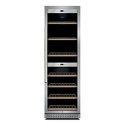 Тип: двухкамерный винный шкаф • Расположение: отдельностоящий • Количество компрессоров: 1 • Цвет: нерж.сталь • Размеры (ШxВxГ): 595x1860x740 мм • Количество дверей: однодверный • Винный шкаф: 180 бут. • Управление: цифровой дисплей, электронное • Освещение в холодильной камере: есть • Холодильная камера: полка для бутылок x 6 • Материал полок: дерево