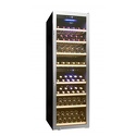 Тип: двухкамерный винный шкаф • Расположение: отдельностоящий • Количество компрессоров: 1 • Цвет: нерж.сталь, чёрный • Размеры (ШxВxГ): 595x1860x700 мм • Количество дверей: однодверный • Общий объем: 455 л • Объем холодильной камеры: 455 л • Винный шкаф: 180 бут. • Управление: цифровой дисплей, электронное • Освещение в холодильной камере: есть • Холодильная камера: полка для бутылок x 8