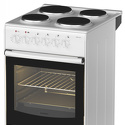 Тип конфорок: электрические • Рабочая поверхность: эмаль • Тип духовки: электрическая • Размеры (ШxВxГ): 500x850x560 мм • Цвет: белый • Конфигурация электрических конфорок: 2 x 145 мм - 1000 g 2 x 180 мм - 1500 g • Электрические конфорки: всего - 4 • Объем духовки: 50 л • Очистка духовки: традиционная • Подсветка: есть • Количество режимов работы духовки: 5 • Тип управления: механическое
