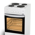 Тип конфорок: электрические • Рабочая поверхность: эмаль • Тип духовки: электрическая • Размеры (ШxВxГ): 500x850x560 мм • Цвет: белый • Конфигурация электрических конфорок: 2 x 1000 g 2 x 1500 g • Электрические конфорки: всего - 4 • Объем духовки: 50 л • Количество режимов работы духовки: 5 • Тип управления: механическое • Переключатели: поворотные • Ящик для посуды: есть