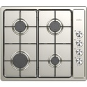 Поверхность: варочная панель • Тип поверхности: газовая • Рабочая поверхность: нерж.сталь • Число конфорок: 4 • Установка: независимая • Газовые конфорки: всего - 4 • Газ-контроль конфорок: есть • Тип управления: механическое • Переключатели: поворотные • Электроподжиг: есть, автоматический • Размеры: 580x550 мм • Цвет: панель - черный