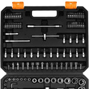 Набор: 196 шт • Ключи: шестигранные • Головки: 6-ти гранные головки • Ключей-трещоток: 1 шт • Хранение: пластиковый кейс