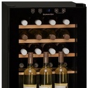 Тип: однокамерный винный шкаф • Расположение: встраиваемый • Цвет: чёрный • Размеры (ШxВxГ): 430x650x480 мм • Количество дверей: однодверный • Общий объем: 62 л • Винный шкаф: 20 бут. • Разморозка: ручная • Управление: цифровой дисплей, электронное • Освещение в холодильной камере: есть • Материал полок: дерево • Класс энергопотребления: B • Годовой расход энергии: 195 кВтч