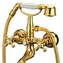 Назначение: ванна+душ • Конструкция: с раздельными клапанами • Монтаж: вертикальный • Материал: покрытие - золото • Подводка: жесткая • Монтажные отверстия: 2 отверстия • Форма излива: традиционная • Душевая лейка в комплекте: есть • Держатель для душевой лейки: на смесителе • Эксцентрики в комплекте: есть • Донный клапан в комплекте: есть