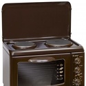 Тип конфорок: электрические • Тип духовки: электрическая • Размеры (ШxВxГ): 550x400x370 мм • Цвет: коричневый • Электрические конфорки: всего - 2 • Объем духовки: 18 л • Максимальная температура духовки: 260 °С • Гриль: есть, электрический • Очистка духовки: традиционная • Подсветка: есть • Количество стекол дверцы духовки: 2 • Тип управления: механическое • Переключатели: поворотные