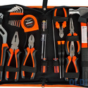 Комплектация- Переставные клещи;- Кусачки;- Плоскогубцы 6 дюймов;- Детектор напряжения;- Плоская и крестовая отвертки с прозрачными ручками 3х150 мм;- Плоская и крестовая отвертки с прозрачными ручками 6х100 мм;- Набор шестигранных ключей - 8 шт;- Рулетка 3 м;- Прецизионные отвертки - 2 шт;;- Длинногубцы 150 мм;- Плоскогубцы 125 мм;- Длинногубцы 125 мм;- Молоток-гвоздодер 0,25 кг;- Сумка.
