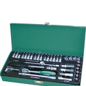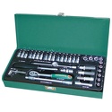 Комплектация- Головки торцевые, 10 шт.: 4, 5, 5.5, 6, 7, 8, 10, 11, 12, 13 мм.;- Головки торцевые глубокие, 3 шт.: 7, 8, 10 мм.;- Рукоятка трещоточная, 135 мм. ;- Удлинители, 2 шт: 50 и 150 мм.;- Удлинитель гибкий, 150 мм.;- Рукоятка отверточная 1/4"DR, 150 мм.;- Шарнир карданный;- Ключи торцевые шестигранные, 4 шт.: 1.5, 2, 2.5, 3 мм.;- Переходник трехсторонний для удлинителя 3/8"DR(F)-1/4"DR(М)- Насадки со вставками-битами крестовой, 37 мм., 16 шт.:- SL4, SL5.5, SL7, РН1, РН2, РН3, Н3, Н4, Н5, Н6, Т10, Т20, Т25, Т27, Т30, Т40;