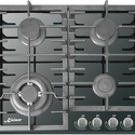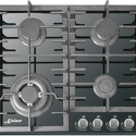 Поверхность: варочная панель • Тип поверхности: газовая • Рабочая поверхность: закаленное стекло • Число конфорок: 4 • Установка: независимая • Газовые конфорки: всего - 4 (1 конфорка "Тройная корона") • Газ-контроль конфорок: есть • Электроподжиг: есть, автоматический • Размеры: 580x510x40 мм • Размер ниши для встраивания: 560x490 мм • Цвет: панель - черный