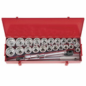 Комплектация- Удлинитель 3/4", 100 мм;- Удлинитель 3/4", 200 мм;- Вороток с шарниром 3/4", 450 мм;- Скользящий вороток 3/4", 500 мм;- Головки размером 22, 24, 27, 30, 32, 36, 38, 41, 46 и 50 мм, 7/8, 15/16, 1, 1 1/8, 1 3/16, 1 5/16, 1 3/8, 1 7/16, 1 5/8, 1 3/4, 1 7/8 и 2 дюйма;- Металлический кейс.