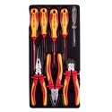 Комплектация- Отвёртки крестовые Phillips диэлектрические 1471 PH1 x 100, PH2 x 100- Отвёртки шлицевые Slotted диэлектрические 1472 4 x 100, 5.5 x 125- Тестер-отвертка для проверки напряжения 6CB02 100-250 V- Пассатижи тонконосые диэлектрические 6318-08A 210 мм- Пассатижи комбинированные диэлектрические 6116-07A 185 мм- Бокорезы диэлектрические 6216-06A 167 мм