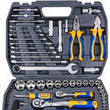 Набор: 73 шт • Головки: 6-ти гранные головки, свечные • Ключей-трещоток: 2 шт • Хранение: пластиковый кейс