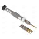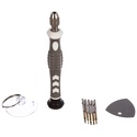 КомплектацияPHILLIPS (крестовая) : PH1.2, PH1.5mmPentalobe (шлиц для продукции Apple) : 0.8TORX (шестигранная звезда): T2, T5ОтверткаМедиатор (для снятия корпуса, извлечения деталей и схем)Присоска (для снятия экрана)Подходит для ремонта большинства видов и моделей популярной портативной техники: смартфоны, часы, планшетные ПК, игровые приставки, электронные сигареты, ремонта iPhone ( iPhone 4, 4s, 5, 5S, 5C, SE, 6, 6 plus), iPAD, iPod