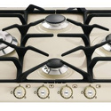 Поверхность: варочная панель • Тип поверхности: газовая • Рабочая поверхность: эмаль • Число конфорок: 4 • Установка: независимая • Газовые конфорки: всего - 4 (1 конфорка "Тройная корона") • Газ-контроль конфорок: есть • Тип управления: механическое • Переключатели: поворотные • Электроподжиг: есть, автоматический • Размеры: 600x500x30 мм • Размер ниши для встраивания: 560x482 мм • Цвет: панель - бежевый