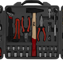 Комплектация- 18 головок: 4, 5, 6, 7, 8, 9, 10, 11, 12, 13, 9, 10, 11, 12, 13, 14, 15, 17 мм;- Тонкогубцы 160 мм;- Комбинированные плоскогубцы 160 мм; - Молоток 300 гр;- Нож;- Рукоятка с трещоткой для головок;- Удлинитель;- Адаптер;- 30 бит:TORX:10, 15,20,25,30,40 мм; PH: 0, 1, 2, 3 мм; PZ1:1, 2 мм; SL:4, 5, 6, 7,1/8, 3/16 мм; Hex:2,3,4,5,6, 3/32”, 1/8”, 5/32”, 1/4”;- 6 отвёрток для точной работы: PH:1, 03, SL:1.4, 2.0, 2.4, 3.0 мм;- Уровень;- Набор восьмигранных ключей 16 шт: 6, 5.5, 5, 4, 3, 2.5, 2, 10, 1.5, 1/6”, 5/64”, 3/32”, 1/8”, 5/32”, 3/16”, 7/32”, 1/4”;- Набор крепежа 87 предметов