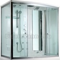 Закрытая кабина, полностенная, комбинированная с ванной, двери раздвижные, материал поддона: акрил, материал стенок: стекло, турецкая баня, тропический душ, вертикальный гидромассаж, габариты (ШхВхД): 90x220x170 см