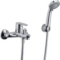 Назначение: ванна+душ • Конструкция: однорычажный • Монтаж: вертикальный • Клапан: керамический • Материал: латунь, покрытие - хром • Подводка: жесткая • Монтажные отверстия: 2 отверстия • Форма излива: традиционная • Душевая лейка в комплекте: есть • Держатель для душевой лейки: настенный держатель • Аэратор: есть • Донный клапан в комплекте: есть