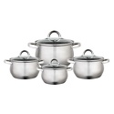 Состав набора- кастрюля со стеклянной крышкой 16х10.5 см; 2.2 л- кастрюля со стеклянной крышкой 18х11.5 см; 3.0 л- кастрюля со стеклянной крышкой 20х12.5 см; 4.0 л - кастрюля со стеклянной крышкой 24х14.5 см; 6.6 л