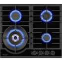 газовая на 4 конфорки • закаленное стекло • мощность: 8600 Вт • автоматический электроподжиг • газ-контроль • решетки: чугун • независимая установка • размеры (ШхГ): 60x51 см