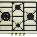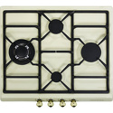 Поверхность: варочная панель • Тип поверхности: газовая • Рабочая поверхность: эмаль • Число конфорок: 4 • Установка: независимая • Газовые конфорки: всего - 4 (1 конфорка "Тройная корона") • Газ-контроль конфорок: есть • Тип управления: механическое • Переключатели: сенсорные • Электроподжиг: есть, автоматический • Размеры: 580x500 мм • Размер ниши для встраивания: 552x470 мм • Цвет: панель - бежевый