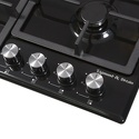 Поверхность: варочная панель • Тип поверхности: газовая • Число конфорок: 4 • Установка: независимая • Газовые конфорки: всего - 4 (1 конфорка "Тройная корона") • Газ-контроль конфорок: есть • Тип управления: механическое • Переключатели: поворотные • Электроподжиг: есть, автоматический • Размеры: 590x520x50 мм • Размер ниши для встраивания: 560x490 мм • Цвет: панель - черный